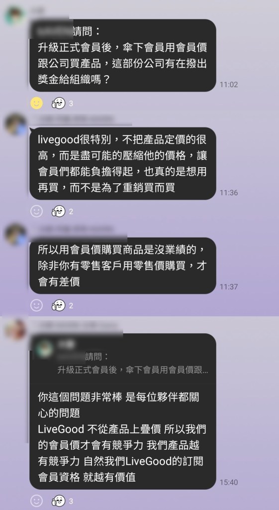 Q:升級正式會員後,傘下會員用會員價跟公司買產品,這部份公司有在撥出獎金給組織嗎?