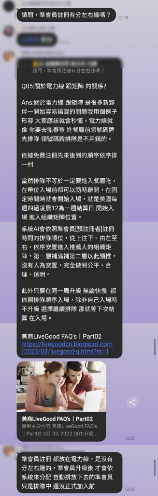 A:準會員註冊 都放在電力線,是沒有分左右邊的,準會員升級後 才會依系統來分配 自動排放下去的準會員只是排隊中 還沒正式加入前