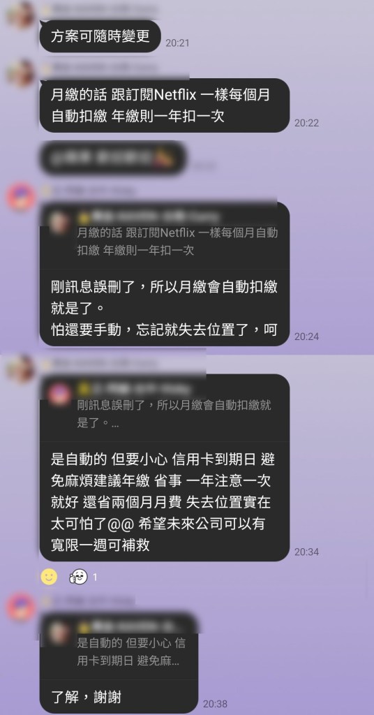 A:月繳的話 跟訂閱Netflix 一樣每個月自動扣繳 年繳則一年扣一次