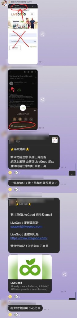 網路上出現 山寨版LiveGood 網站 登錄時請注意網址 辨明正身