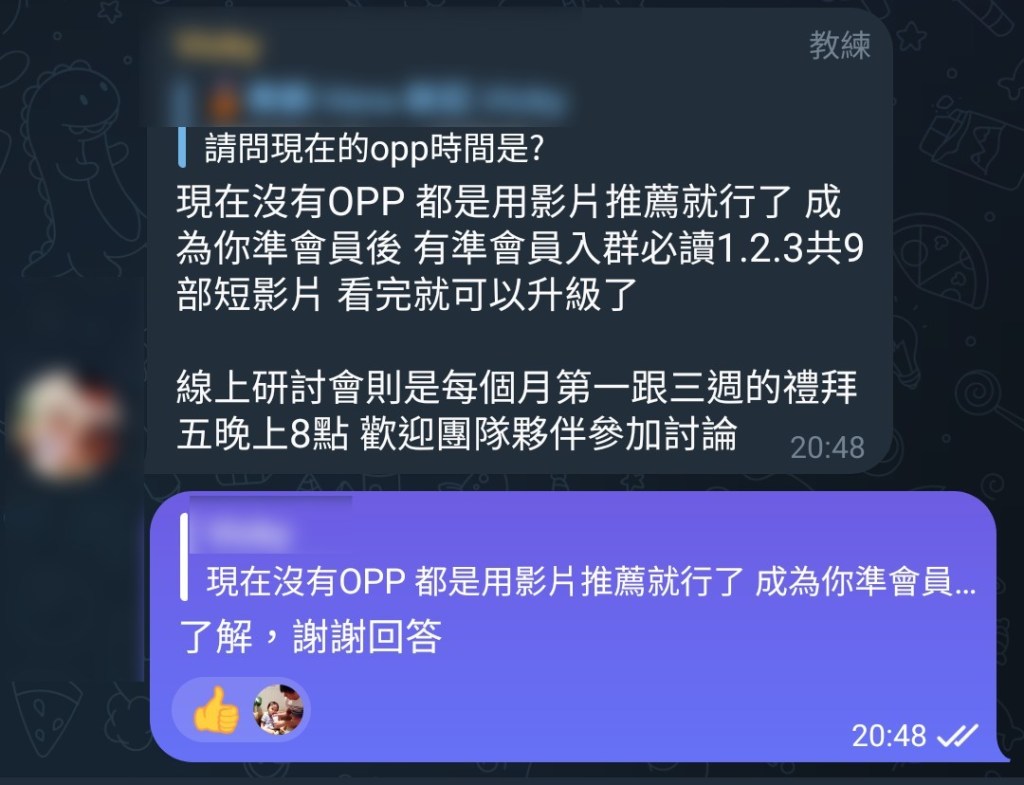 A:現在沒有OPP 都是用影片推薦就行了 成為你準會員後 有準會員入群必讀1.2.3共9部短影片 看完就可以升級了