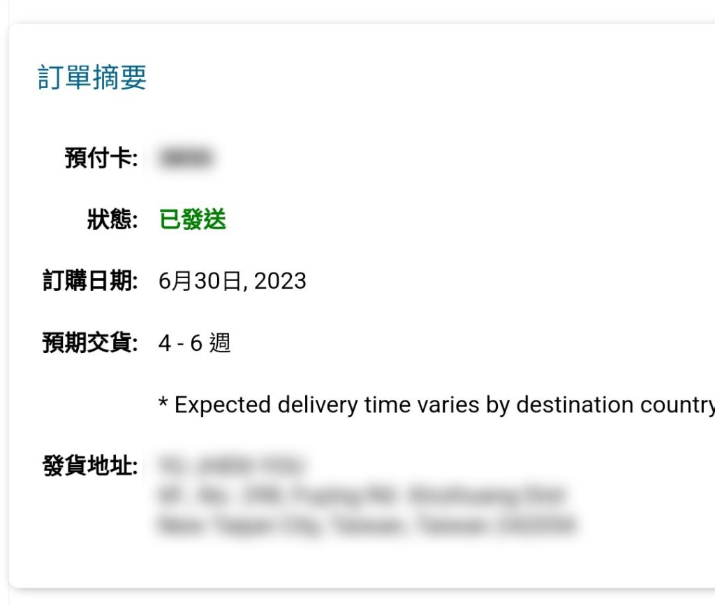 飄洋過海用平信寄的預付卡在07.25收到啦…