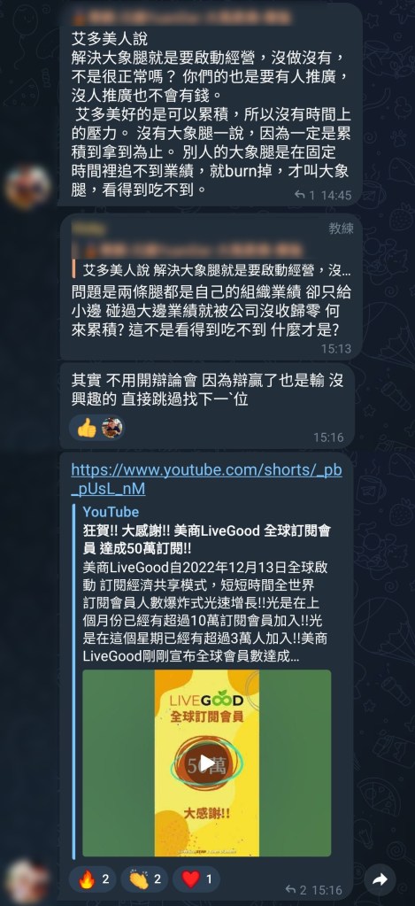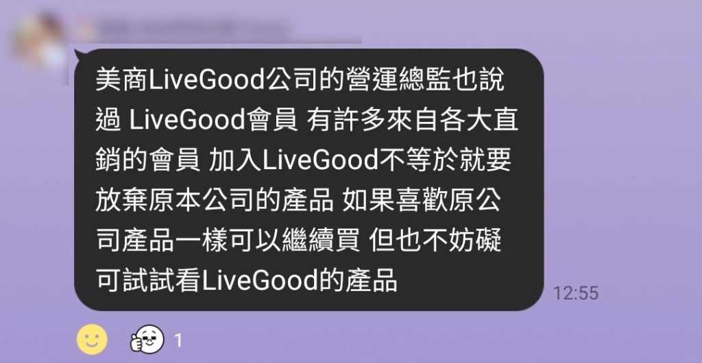 美商LiveGood公司的營運總監也說過 LiveGood會員 有許多來自各大直銷的會員 加入LiveGood不等於就要放棄原本公司的產品 如果喜歡原公司產品一樣可以繼續買 但也不妨礙可試試看LiveGood的產品