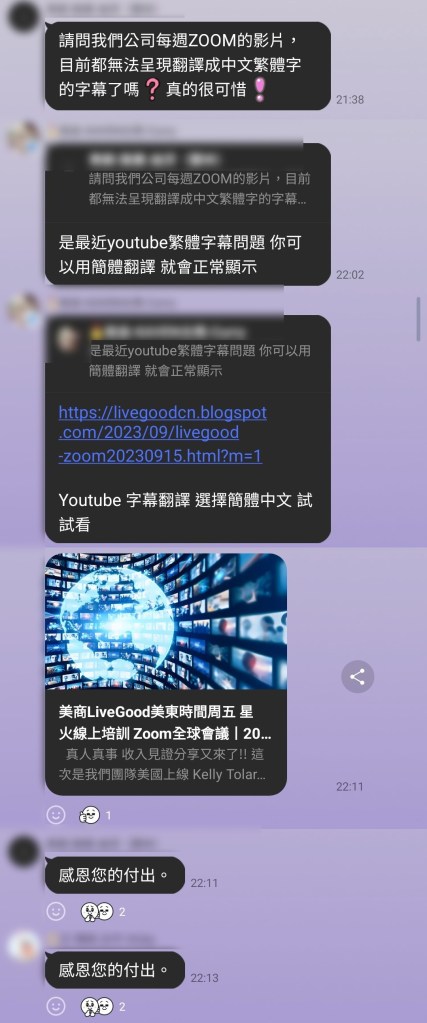Q:請問我們公司每週ZOOM的影片,目前都無法呈現翻譯成中文繁體字的字幕了嗎(?)