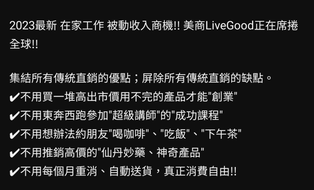 LiveGood集結所有傳統直銷優點摒除其缺點