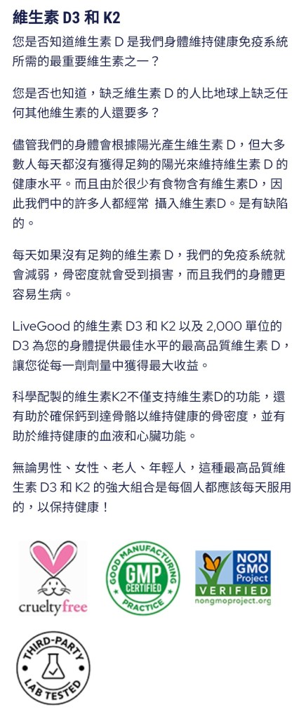 基本上LiveGood產品都是純素 與美國農業部認證有機的 且都有第三方驗證