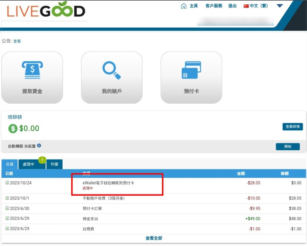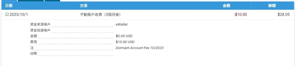 為了不讓它扣閒置費10美元/月而只扣保管費2美元/月,把帳戶裡的錢都先儲值到預付卡中