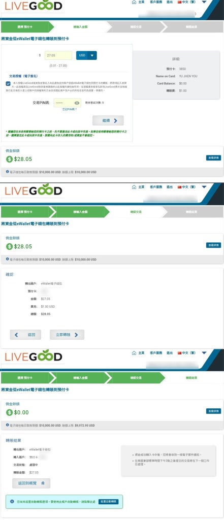 ①將所有的錢儲值到預付卡