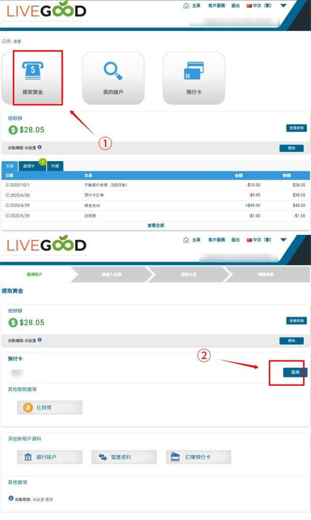 提取資金/預付卡/選擇