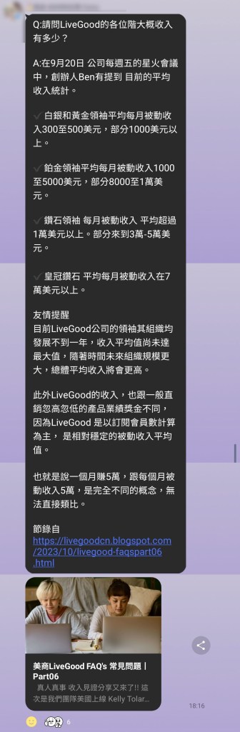 此外LiveGood的收入,也跟一般直銷忽高忽低的產品業績獎金不同,因為LiveGood 是以訂閱會員數計算為主, 是相對穩定的被動收入平均值。