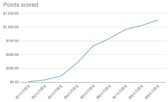 統計LiveGood月獎金 被動收入折線圖