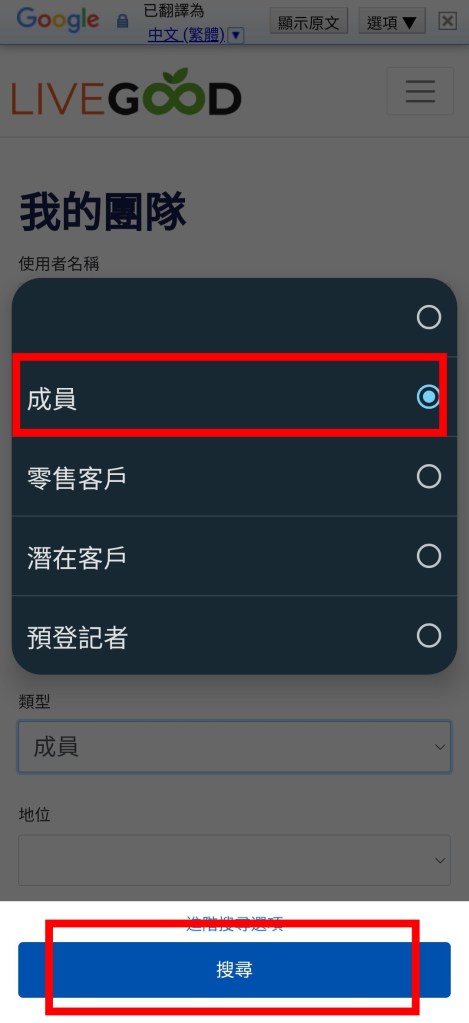 選擇類型/搜尋