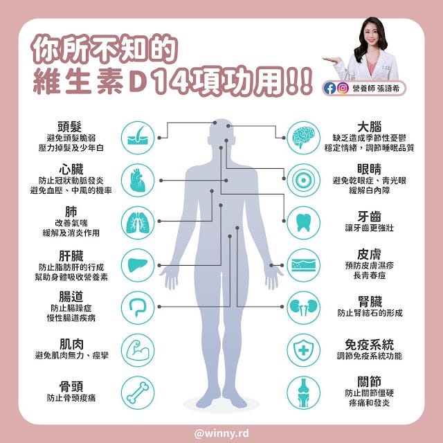 來自營養師張語希的專業分享,告訴你所不知維生素D的14項功用!!