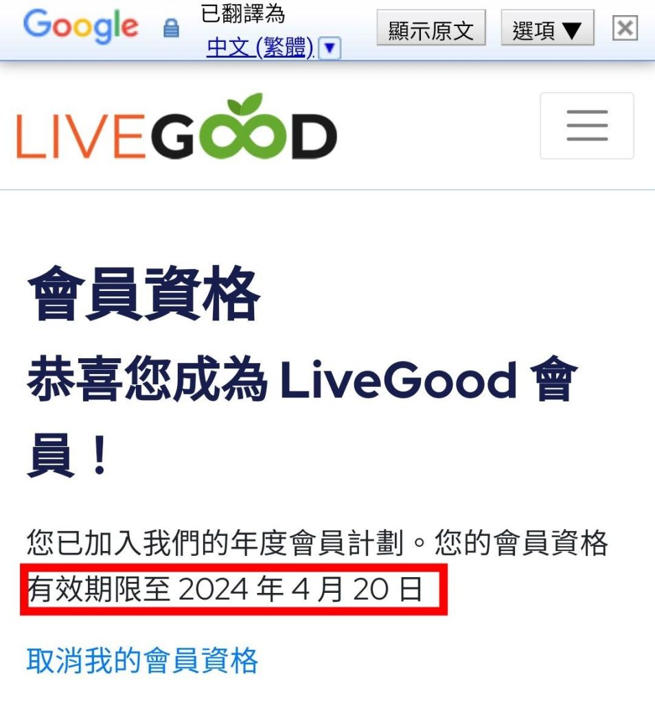 ①登入LiveGood官網後,先到我的會員資格查詢到期日