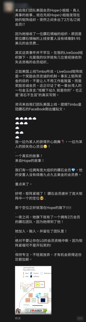 正如美國上線Timbo所說,LiveGood矩陣就是一個獎勵會員忠誠的機制。