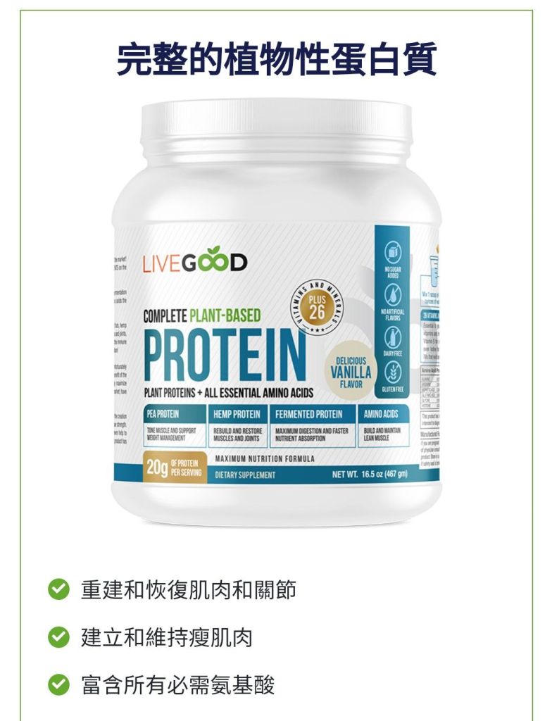 香草風味的LiveGood蛋白粉