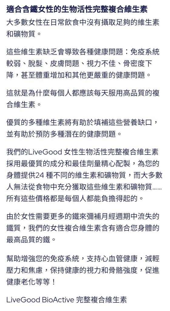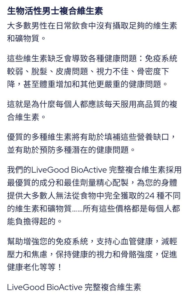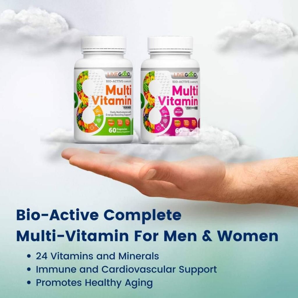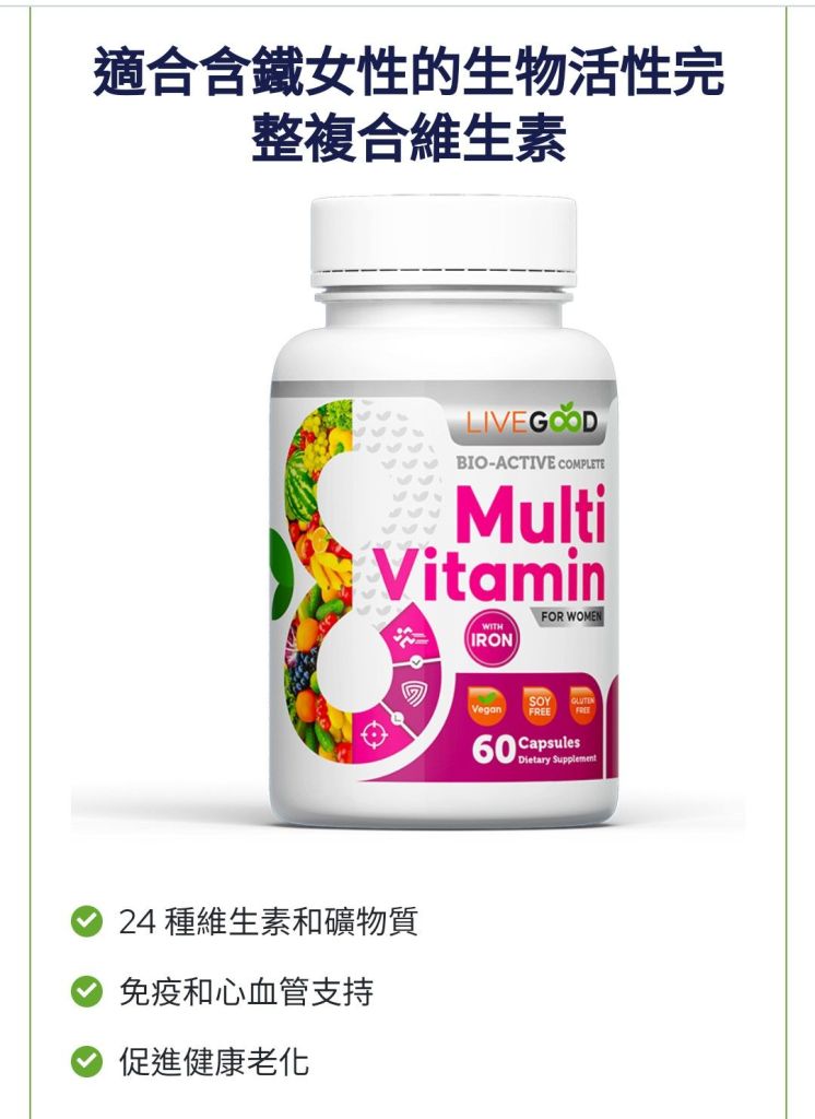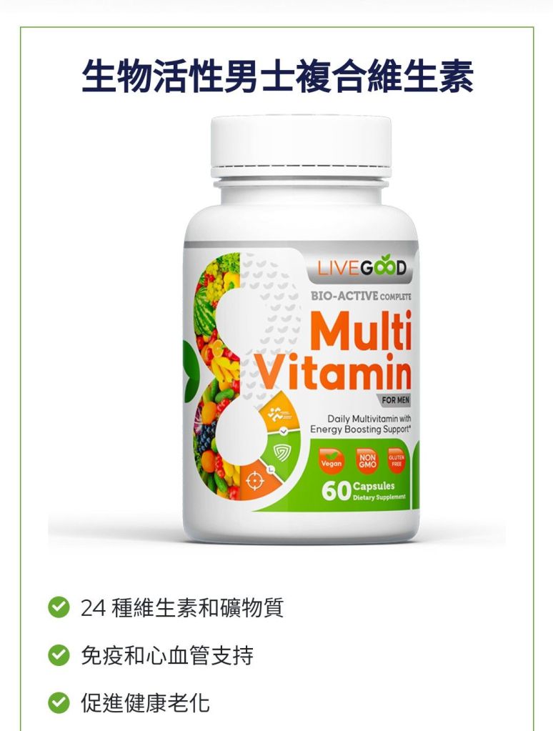 每一種LiveGood 複合維生素經過精心配製,可為您的身體提供無法從食物中獲取的24種維生素和礦物質。
