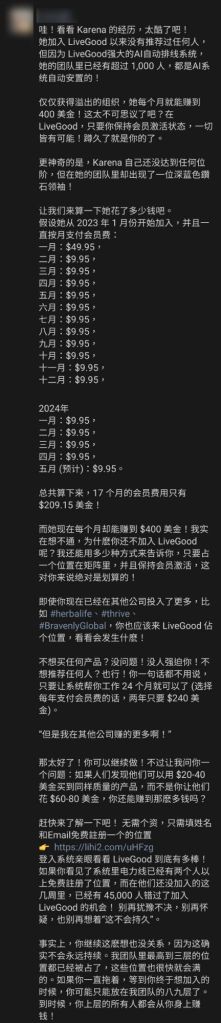 她加入 LiveGood 以來沒有推薦過任何人,但因為 LiveGood強大的AI自動排線系統,她的團隊裡已經有超過 1,000 人,都是AI系統自動安置的!